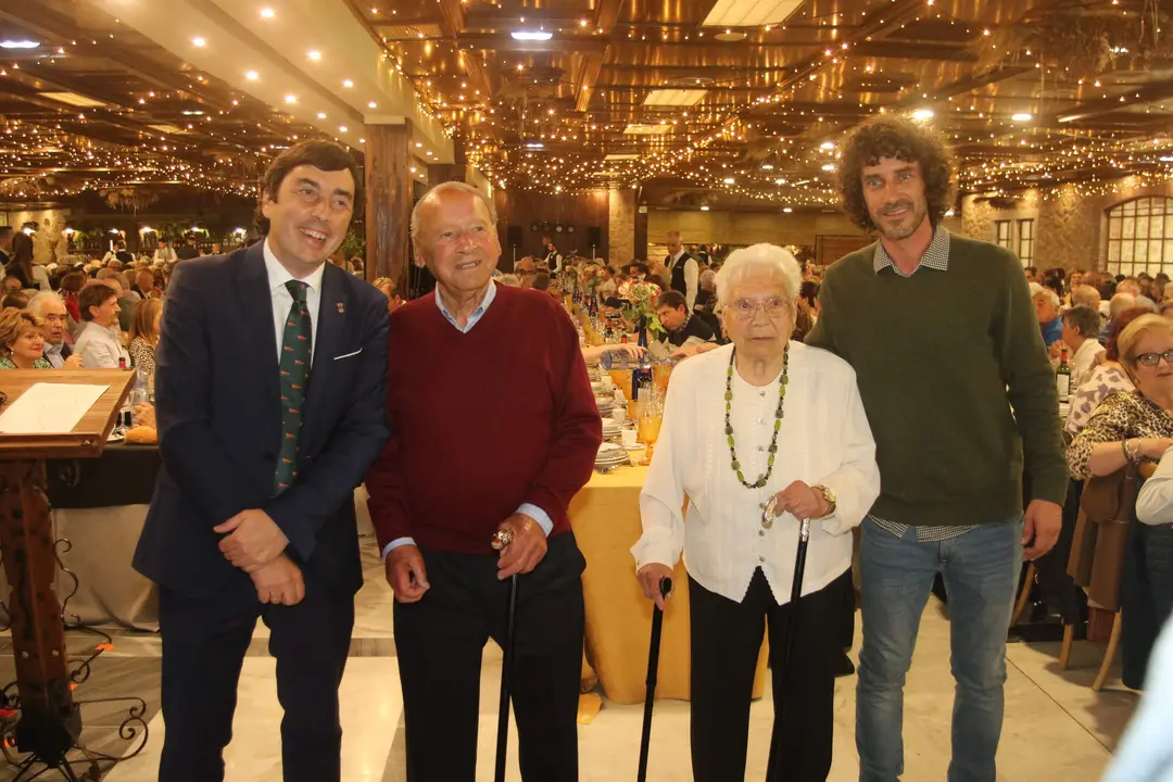 Tras la celebración de la misa, la siguiente cita se situaba en el Restaurante La Campana, de Pruvia, preparado para acoger a cerca de 900 comensales que celebraron la comida de hermandad con los pensionistas y jubilados del concejo. Previo al almuerzo y demás actividades posteriores, se rindió un sentido homenaje a los dos comensales, hombre y mujer, de mayor edad en la celebración. En este caso fueron Candelaria Josefina Santalla Campos, con 100 años contemplándola desde el pasado mes de febrero y Jesús Hevia Nieto, de 94 años de edad. Tras la comida, sorteo de regalos entre los presentes y baile hasta que el cuerpo aguante