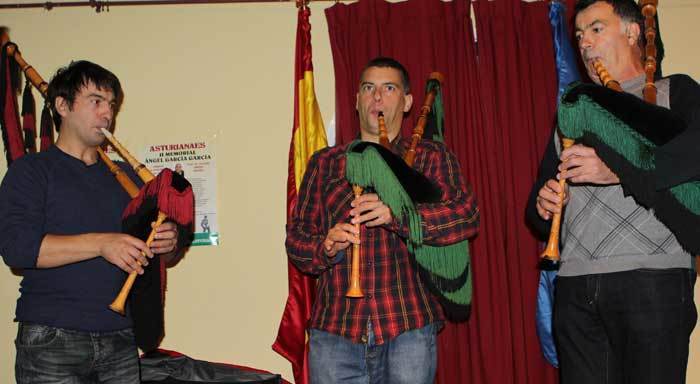 Los gaiteros Oscarín Fernández, Iván Rionda y Pachi Gómez López
