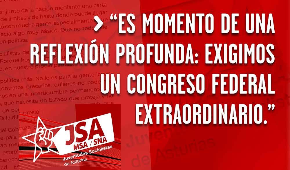 Desde las Juventudes Socialistas de Asturias solicitamos la convocatoria de un Congreso Federal Extraordinario como el espacio legítimo para esa reflexión. Es nuestro máximo órgano el que puede volver a crear un proyecto sólido, renovado y que recupera la credibilidad. También porque consideramos imprescindible revisar, reforzar y sobre todo renovar nuestras estructuras y nuestros protocolos.