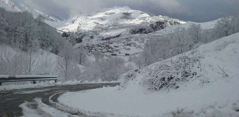 La nieve ya cubre la localidad cabraliega de Sotres, donde la quitanieves trabajó esta mañana para abrir la carretera que sube al pueblo más alto de Asturias y que continúa hacía Tresviso (Cantabria).