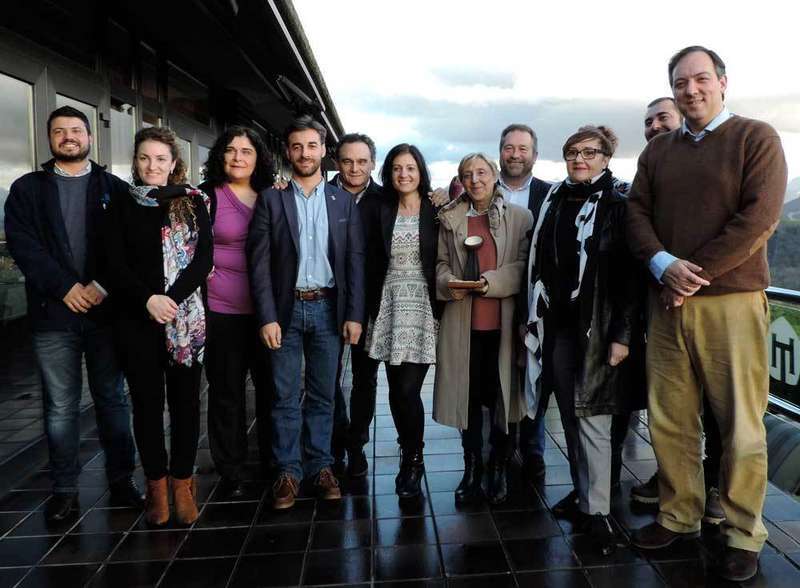 Las premiadas con los alcaldes de la Comarca de la Sidra.