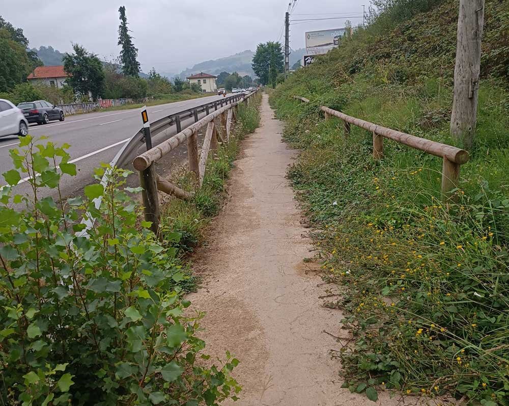 La senda peatonal que discurre en paralelo a la carretera Nacional 625, entre Arriondas y Cangas de Onís –conocida como la senda de Cascos–, por la que transitan cientos de peatones a diario (muchos más en estos meses de verano), muestra un abandono considerable como se puede ver en la imagen.