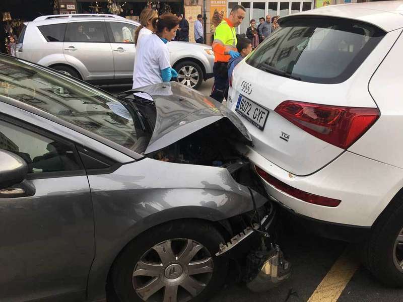 A los pocos minutos del golpe, en pleno centro de la ciudad, se arremolinaban junto a los cuatro coches implicados una nube de viandantes.