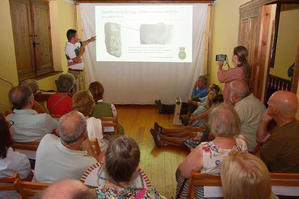 A continuación, el autor presentó sucintamente su trabajo, dividido en capítulos accesibles a todos los públicos. En él realiza un profundo análisis sobre el pueblo vadiniense que incluye un detallado catálogo de las veintiuna estelas asturianas junto a una completa bibliografía. Añade, además, una síntesis dedicada a los lectores menos familiarizados con la historia antigua. Los asistentes realizaron numerosas preguntas relacionadas con el pasado romano de Cangas de Onís y del Oriente de Asturias.