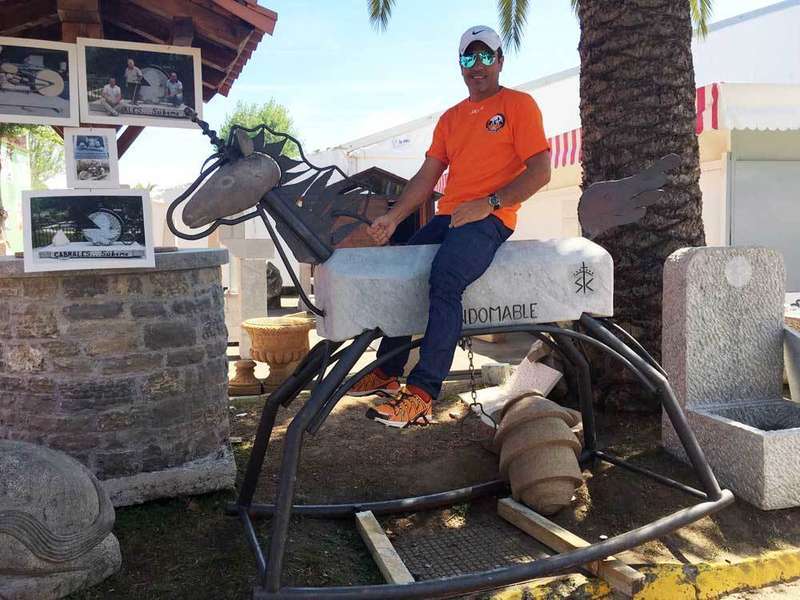 La escultura está expuesta en el stand de Cantería Cardín, para que todo aquel que quiera se suba y «pueda imaginar lo que sería viajar por nuestras montañas en una montura semejante», aseguró el autor a EL FIELATO. Torrado suma con este “Indomable” su tercera escultura interactiva. La primera fue “Pelayina”, la moto que está en Cangas de Onís con la que miles de personas se han fotografiado ya. La segunda, la “Bici Voladora”, se colocaba hace unas semanas en Arenas de Cabrales. Con ambas ya se han fotografiado miles de personas.