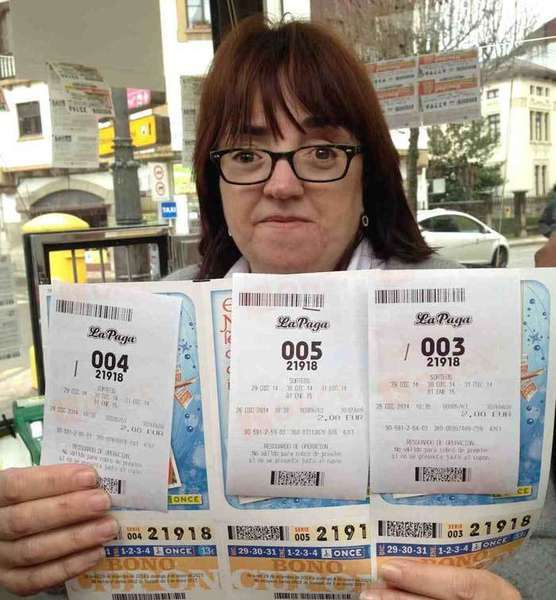 Violeta Torre Alonso, vendedora de la Once en Cangas de Onís, dio el premio a cuatro personas, que están abonadas al número 21.918, los premios recayeron en el Bonocupón Semanal, una de las infinitas ofertas que ahora llevan consigo los “cuponeros”. Cada uno de los cupones premiados se llevó 35.000 euros. Violeta regenta el punto de venta que está en la Plaza Camila Beceña de Cangas de Onís.