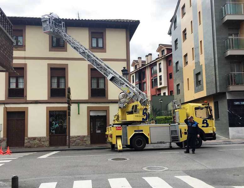 Bomberos de Asturias del Parque de Cangas de Onís retiraban durante la mañana de hoy un ehjambre de abejas del alero de un edificio de la Avenida Covadonga de la capital canguesa. Para poder ahuyentar a las abejas fue necesario ayudarse de una autoescalera.