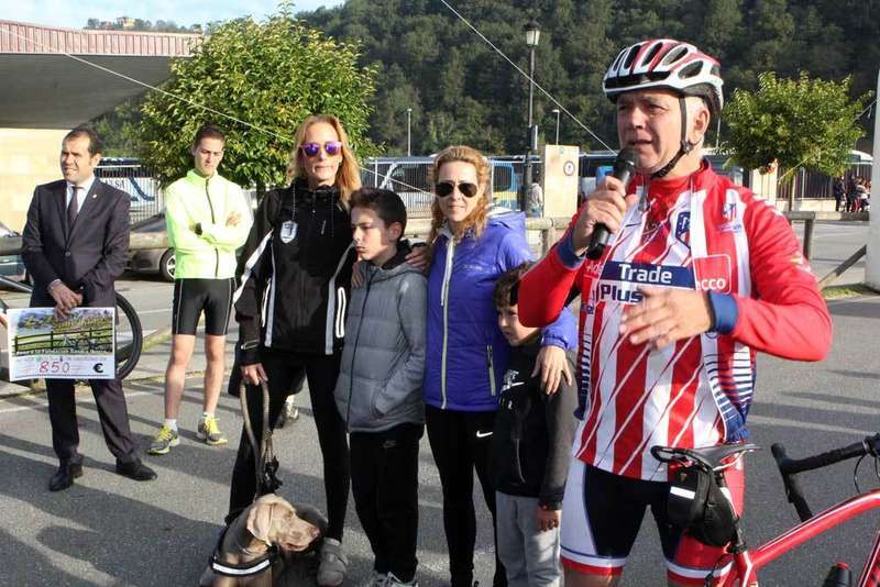 La prueba solidaria, recaudó 850 euros para luchar contra el cáncer, arrancó con todos los asistentes guardando un minuto de silencio en memoria de José Luis Belanche Serrano, asturiano afincado en Leganés (Madrid), promotor de esta prueba junto a su amigos el periodista Juan Ramón Lucas y Sandra Ibarra. Belanche falleció el pasado 23 de septiembre, a los 47 años de edad a causa de un infarto, cuando preparaba la subida. Hoy estuvieron en Cangas de Onís su viuda y sus dos hijos, que fueron los encargados de dar la salida a los participantes.