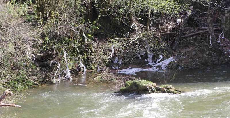 Tiras y tiras de plástico, supuestamente de uso ganadero, que se ven desde Canzolaz hasta Cangas de Onís y que la última de las riadas dejó colgados en muchos casos, ahora, a varios metros sobre el cauce.