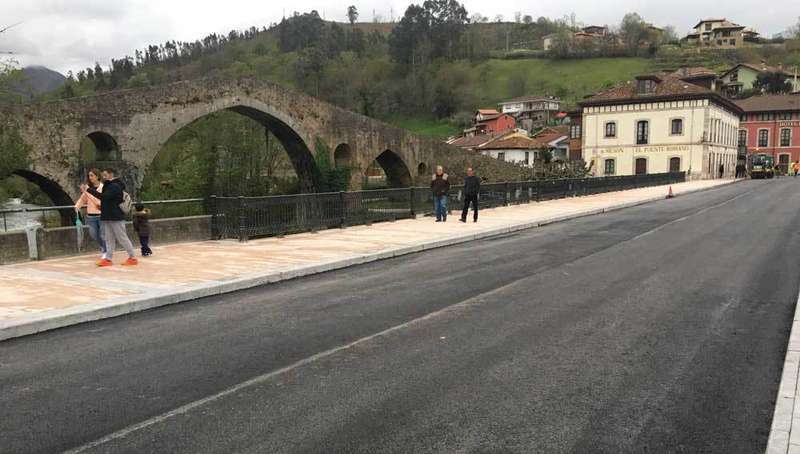 La obra para renovar la entrada a Cangas de Onís por el Puente Romano está casi concluida. El proyecto, que se acometió con cargo a una subvención del Parque Nacional de los Picos de Europa ha supuesto la inversión de 84.000 euros. La principal actuación fue el ensanchado de la acera de la margen derecha del puente de la Nacional 625, que ahora tiene 4 metros.