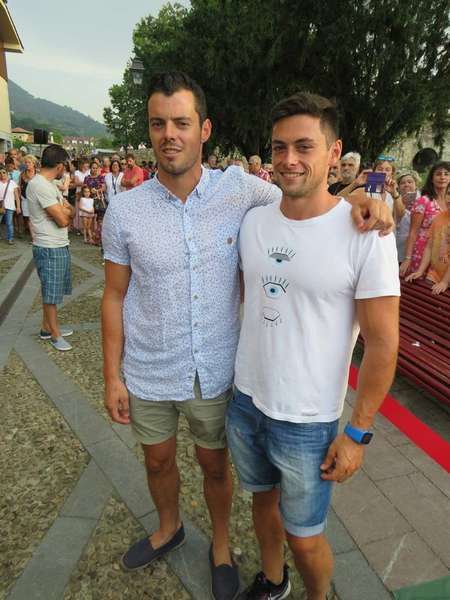 Milín Llamedo y Pedro Vázquez, los flmantes campeones del Sella se acercaron a Cangas para la inauguración.