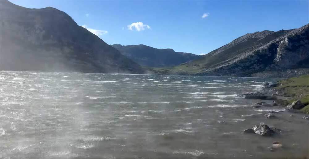 La fuerza del viento que sopló ayer lunes en los Picos de Europa nos dejó imágenes como las de este vídeo que grabó Fernando Moro Sarmiento en Los Lagos de Covadonga.