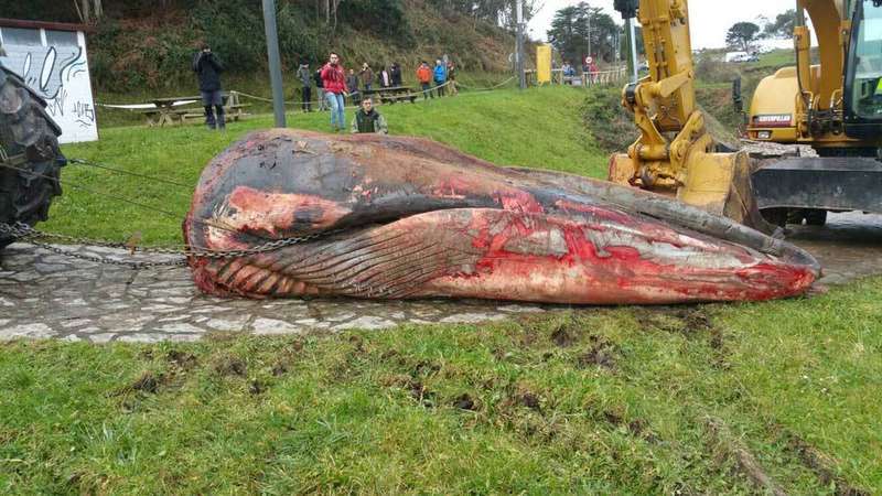 Hoy sábado el cetáceo fue troceado por operarios dle Principado, de la Compañía para la Gestión de los Residuos Sólidos en Asturias (Cogersa) y del Ayuntamiento de Caravia y los restos se enviaron a las instalaciones de Proygrasa, que dependen de Cogersa