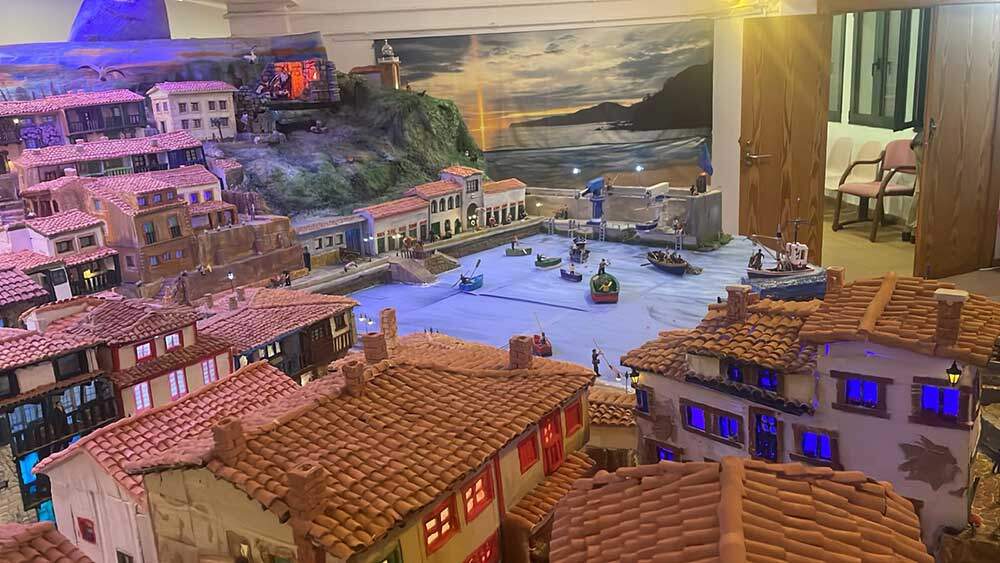 El Belén de este año ocupa 32 metros cuadrados, dos más que el año pasado, e incorpora alguna novedad, como la Torre de los Hevia. Es una réplica casi perfecta de la localidad pesquera maliayesa, realizada en porexpan y en la que se reconocen alguno de los vecinos y también de los establecimientos hosteleros del pueblo pesquero.