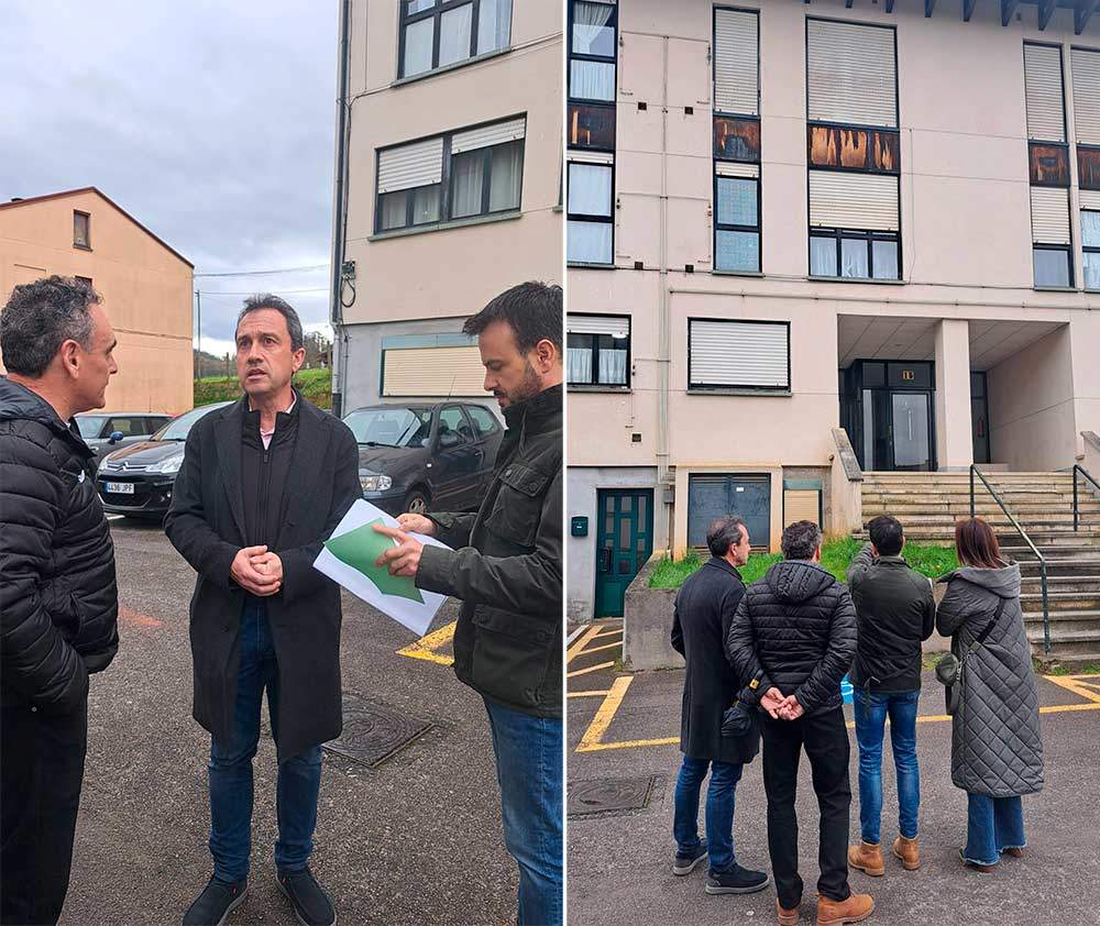 Zapico; el alcalde del concejo, Juan Cañal; la concejala de Servicios Sociales, Igualdad y Cultura, Sandra Fernández Villazón, y el director general de Vivienda, Jesús Daniel Sánchez visitaron el inmueble en el que se van a llevar a cabo las actuaciones contempladas en la cubierta, la fachada y las ventanas; además se instalará un ascensor y se eliminarán las barreras arquitectónicas. Las obras supondrán que «este edificio sea más eficiente desde el punto de vista energético y más accesible; en definitiva, más habitable», apuntó Zapico.