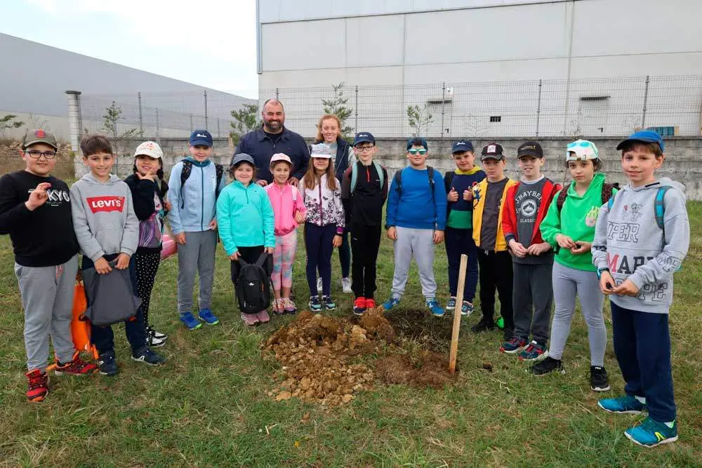 El alumnado del Colegio Público Salvador Vega Berros, de Sariego, protagonizó esta mañana la primera de las actividades enmarcadas en la XXVI Semana Cultural del municipio y que consistió en una plantación de árboles en una finca municipal destinada a zona verde en el polígono de Santianes. En concreto, los menores plantaron siete robles, uno por aula. Asimismo, el ciclo de Educación Infantil disfrutó durante el paseo hasta la parcela de una yincana.