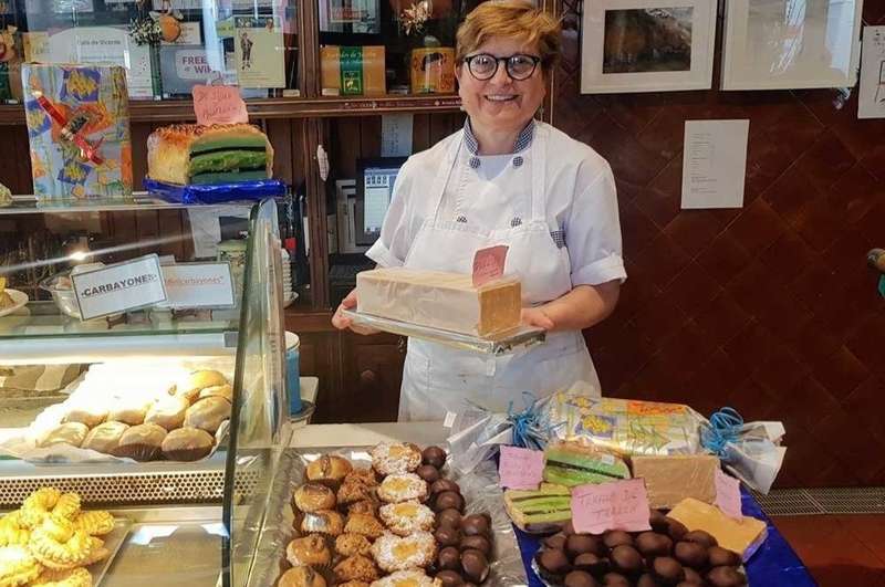 Las vitrinas de la Pastelería Café de Vicente de Villaviciosa están repletas de la colorida oferta de turrones y especialidades navideñas que salen de las manos de Jacoba Álvarez. El obrador del establecimiento maliayés trabaja desde hace días a pleno rendimiento elaborando productos que son santo y seña de la casa como los turrones de sidra y manzana, el de rajalmendra y praliné, el Doña Letizia... y otros con sabores asturianos como el de avellanas con higos, o el novedoso de castañas