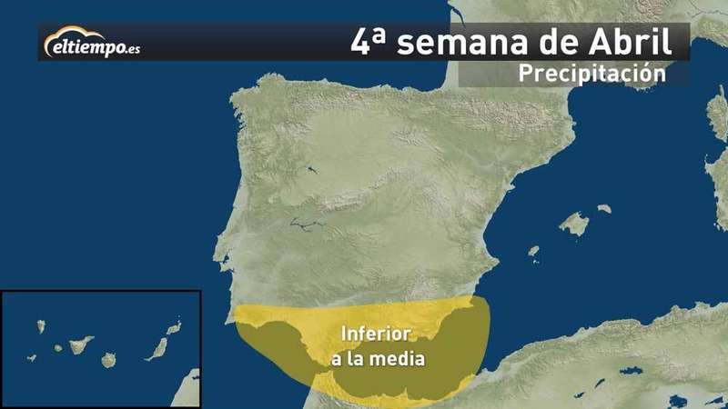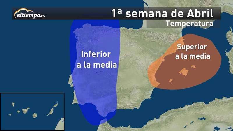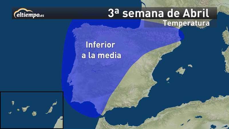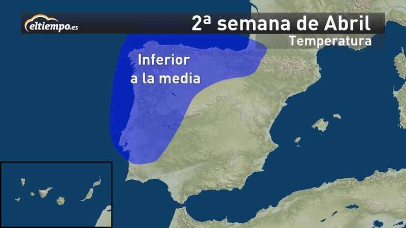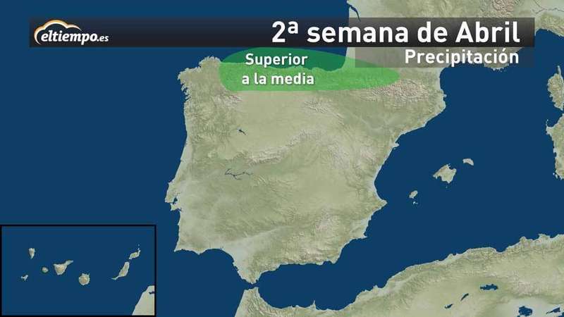 Parece que este mes de abril se va a caracterizar por presentar temperaturas más frías de lo normal, sobre todo en el oeste y norte peninsular; y por ser más lluvioso en el norte (Cantábrico y Galicia). Y será más seco en todo el sur peninsular y Mediterráneo.