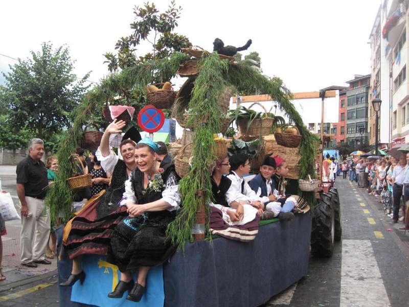 Por la tarde, a las 18 horas, comenzará el desfile de las Carrozas, que llegará a las 19 horas al Parque de la Concordia donde tendrá lugar el reparto del bollu preñáu y la botella de vino a todos los socios. Tras la merienda habrá romería y verbena con las orquestas “Satélites” y “Nueva Banda”. A las doce de la noche se lanzarán los fuegos artificiales.