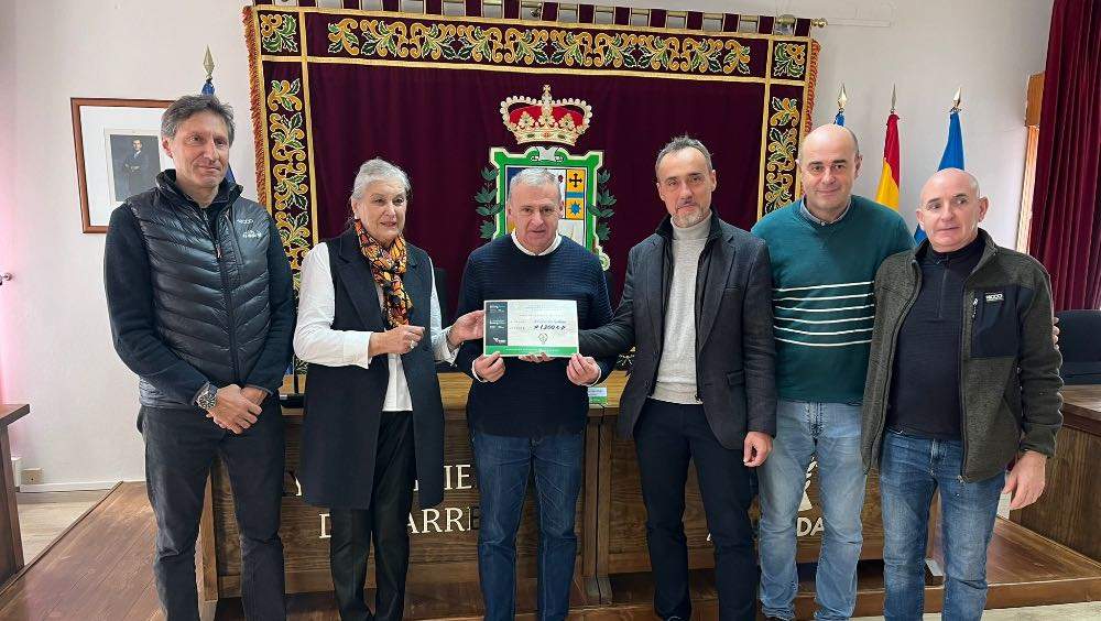 El director de la Fundación Asturiana de la Energía, Carlos García, ha entregado hoy al alcalde de Parres, Emilio García Longo, el cheque regalo de 1.200 euros como municipio ganador del Gran Prix de la Fundación Asturiana de la Energía (FAEN), Pedalada Solidaria. En este acto de entrega también estaban representantes de la Asociación Galbán, organización que eligió el consistorio para la donación del premio.