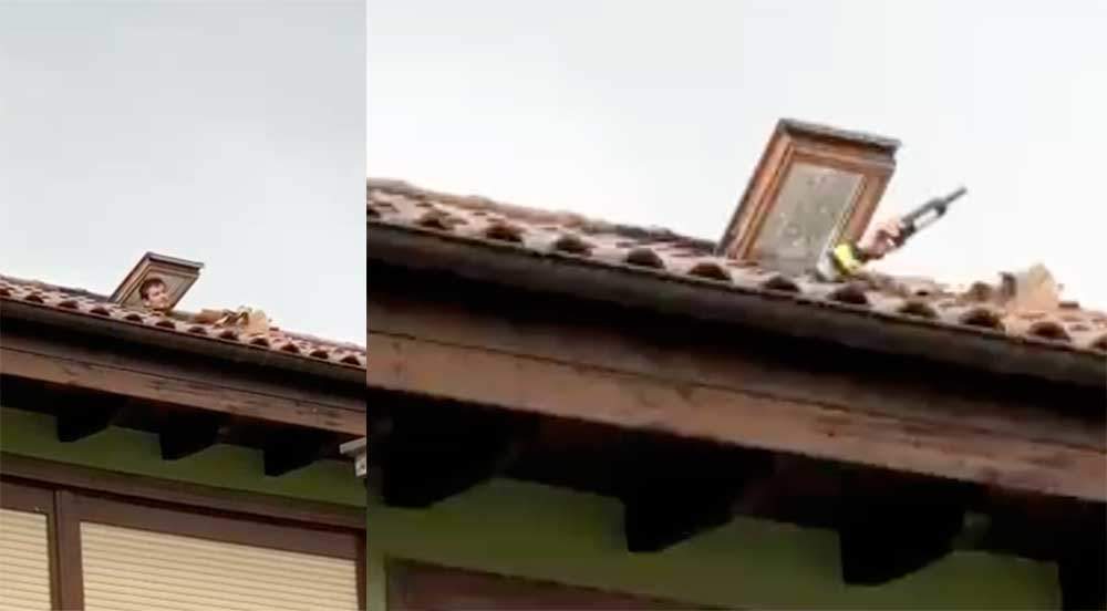 Decenas de curiosos seguían esta tarde con curiosidad la actuación en Arriondas de la dotación los Bomberos del Servicio de Emergencias del Principado de Asturias, con base en Cangas de Onís. Los Bomberos fueron movilizados tras caer una botella de vino desde un tejado a la calle, en pleno centro de la capital de Parres.