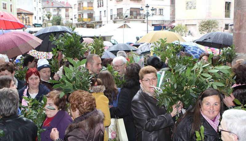 La mayoría de las bendiciones tuvieron que llevarse a cabo bajo techo, a causa de la lluvia. En Cangas de Onís el párroco, José Manuel Fueyo, bendijo los ramos delante de la iglesia parroquial de Santa María.