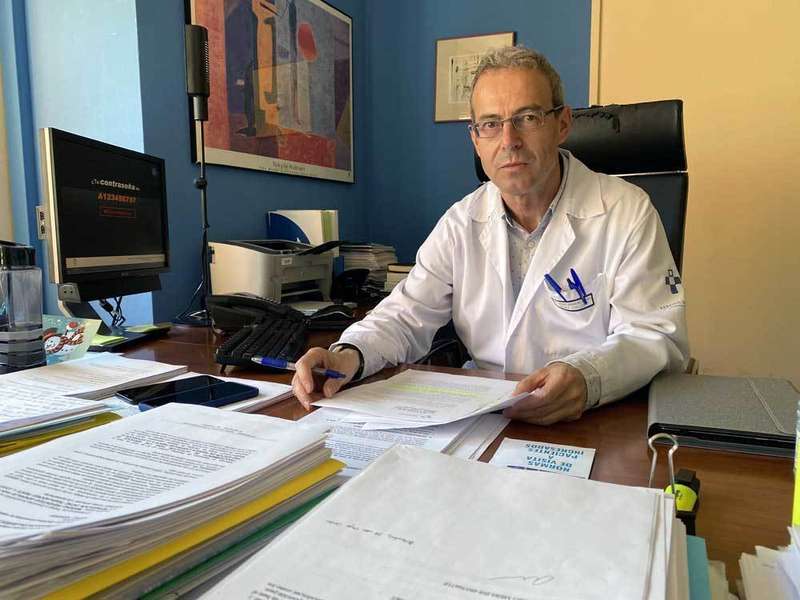 El cirujano José Manuel Llera, gerente del Área Sanitaria VI, que tiene de cabecera al Hospital Comarcal del Oriente, Francisco Grande Covián, recibe a EL FIELATO en su despacho de Arriondas. Llera ncabeza al equipo de sanitarios tanto del Hospital Grande Covián como de los centros de salud del Área Sanitaria VI, que han trabajado duro en los últimos dos meseses ayudando a que la pandemia en Asturias refleje las cifras de afectados, hospitalizados y fallecidos, de las más bajas de todo el país.