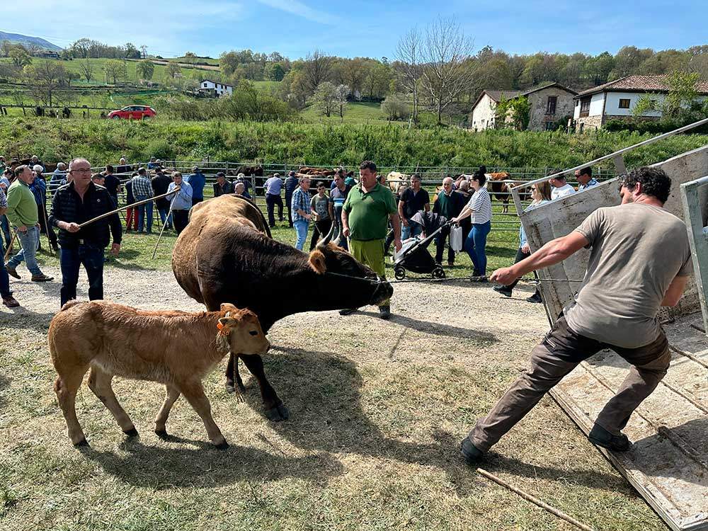 Sevares vivió hoy una animadísima jornada a lo largo de la mañana, con la tradicional feria de ganados de Semana Santa y por la tarde, con las carrera de cintas a caballo. A lo largo de la mañana, a demás de mucho público, hubo numerosos tratantes y se cerraron un buen número de tratos. Toño el de Mestas, cargó en el camión cinco vacas, con destino a su explotación en el concejo de Cangas de Onís.