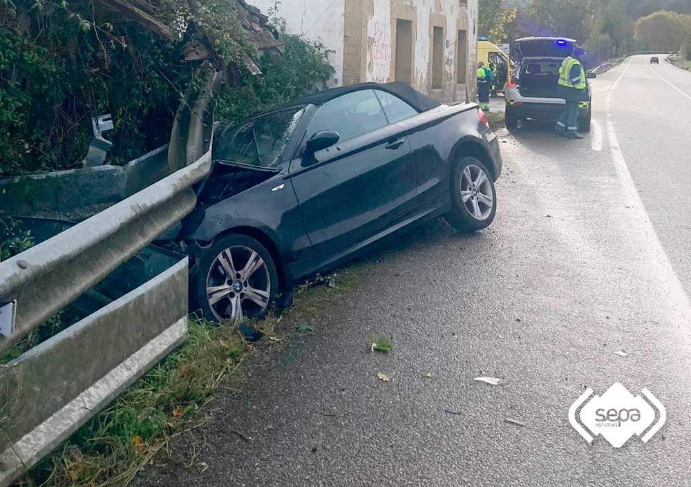 La colisión de un BMW Serie 1 cabriolete contra el quitamiedos en la Nacional 634, a su paso por Ozanes (Parres), se ha saldado con un herido, el conductor del turismo.