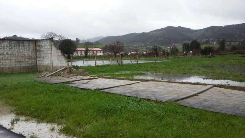 Uno de los muros que cierra Les Caleyes, el campo municipal de fútbol de Villaviciosa donde juega el Lealtad, se vino abajo a causa del fuerte viento.