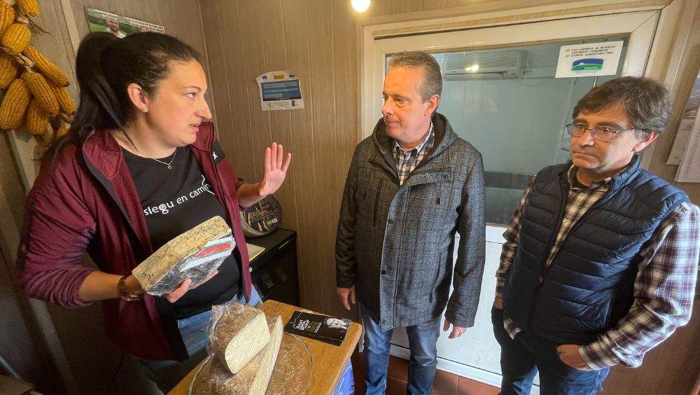 Marcelino Marcos Líndez, consejero de Medio Rural y Política Agraria, ha visitado hoy en Asiegu la única quesería de queso Cabrales ecológico. Una visita que coincide con el fin de las obras de abastecimiento de agua de la cueva de La Boriza, en la que se se maduran los quesos de esta Denominación de Origen Protegida (DOP).