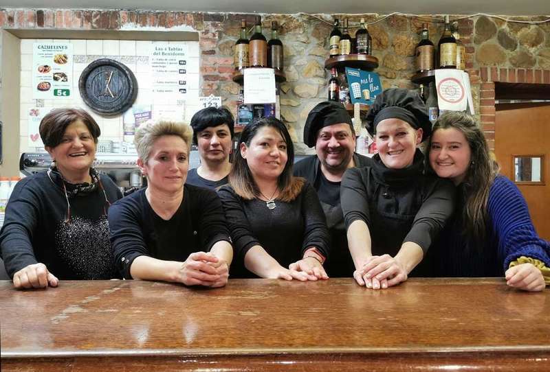 De pie, por la izquierda: Luis Rodríguez, “El Neniti”, Dulce Diego, Josefa Rodríguez y Gonzalo “El de la Cantina”. Sentados: Lola Acebal, Francisco Fernández, María Acebal e Isabel Pastrana, en los inicios del negocio, en 1970.