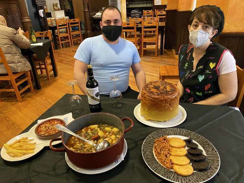 Sopa de hígado, borona, pote asturianu, callos, tortu con picadillo y probe y manos de cerdo