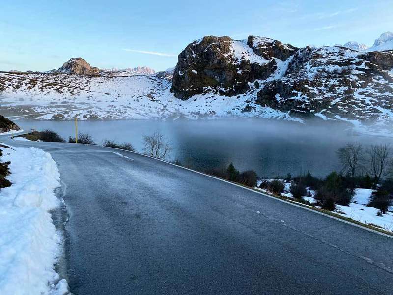 Ni en autobús, ni en coche, el Principado corta la carretera de Los Lagos en Semana Santa