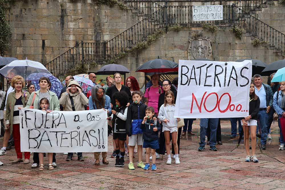 Mientras se celebraba el pleno en la Casa Cosistorial de Pioña, fuera, en la Plaza del Ayuntamiento se manifestaban cerca de un centenar de personas convocados por la Plataforma Baterías No, que son los responsables de que los políticos se pongan las pilas ante la llegada de estos proyectos de instalación de parques de baterías, que en Europa ya comenzaron hace tiempo y que aquí están aún sin una normativa que regule la ubicación de los mismos.
