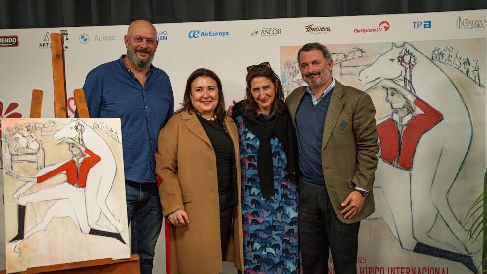 Yeguada Finca Maeza, de Sariego, ha desvelado esta mañana el cartel del Concurso de Saltos Internacional Maeza 2025, que tendrá lugar entre el 4 y el 6 de junio. Una cita muy emocionante en la que, además de la familia Bares Maestre -anfitriones del acto-, también estuvo presente la artista asturiana Breza Cecchini, autora del cartel oficial, y Toño Velasco, autor del cartel de la edición de 2024.