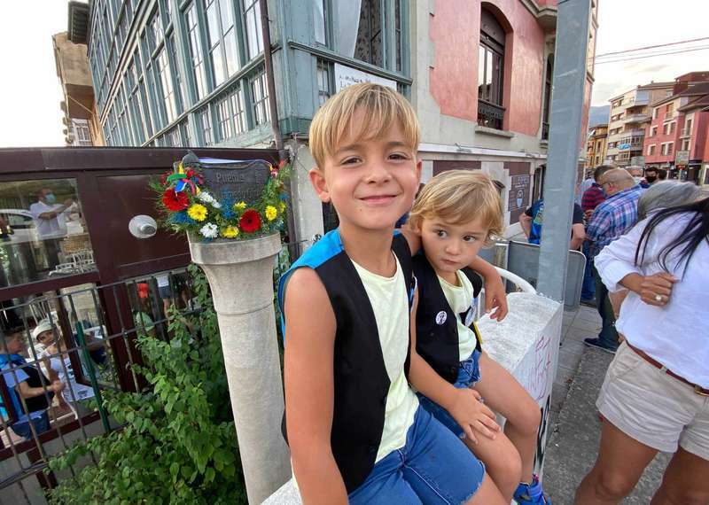 Su hijo, Emilio, fue el encargado de colocar, como cada año ese collar de flores y allí estaban sus hijos, los nietos de homenajeado, Emilio y David Llamedo Hórreo, ataviados con los chalecos Selleros. No faltaron tampoco miembros del Codis, con su presidente Juan Manuel Feliz a la cabeza o del colectivo Amigos de Dionisio de la Huerta, entre otros.