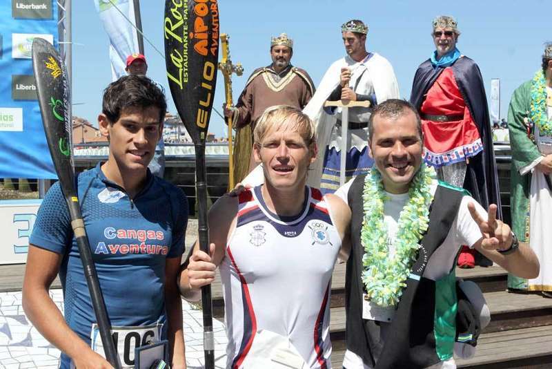 Kiko Vega, de la Sociedad Cultural y Deportiva de Ribadesella, se impuso hoy entre los K-1 en el 80 Descenso Internacional del Sella. Vega compartió pódium con Borja Stomba y con Alberto Plaza Sagredo, el joven palista cangués, sub 23, que está que se sale.