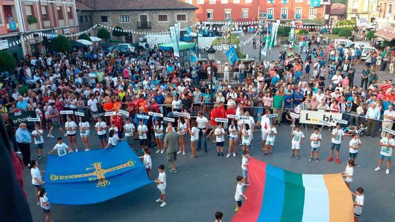 Momentos previos al desfile de las Naciones, hoy viernes en Arriondas.