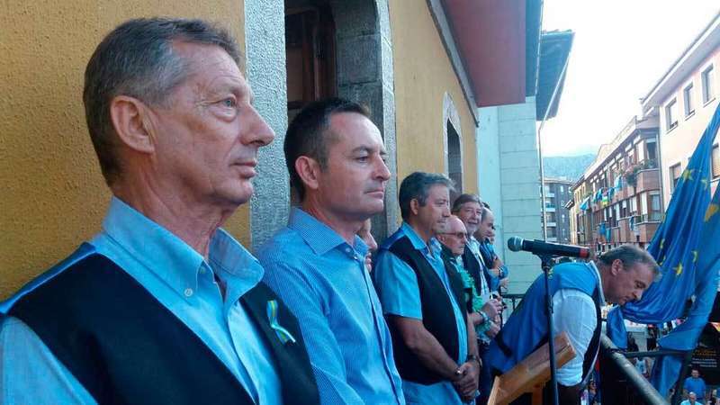 Las autoridades en el balcón del Ayuntamiento de Parres.