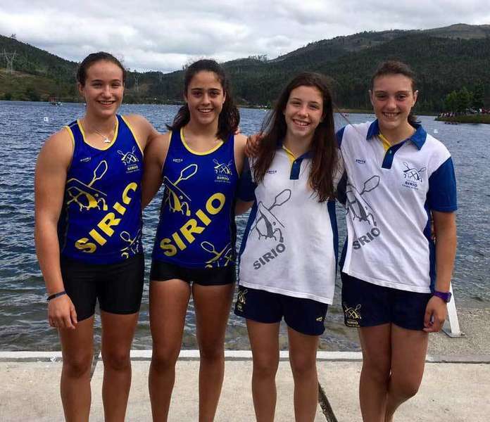 Otras cuatro chicas, del Club Sirio de Cangas de Onís cosecharon el oro en los Campeoantoas de España: Elena Hernanz San Millan y Angela Migoya Garcia se proclamaron Campeonas de España en Mujer Cadete K2 sobre la distancia de 500 metros. Y Laura Palacios y Carla Corral conseguían tabmién el oro en K2 Mujer Infantil-A.