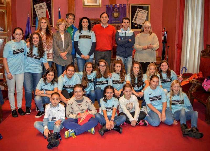 En el acto, que tenía lugar esta tarde, participaron también la concejal de Igualdad, Rocío Campos; la edil de Deportes, Ana López y la concejal del Partido Popular Ana Carmen Fernández, así como el presidente del club Faustino Ortiz, y los entrenadores Santi Tuero y Paula Acebedo.