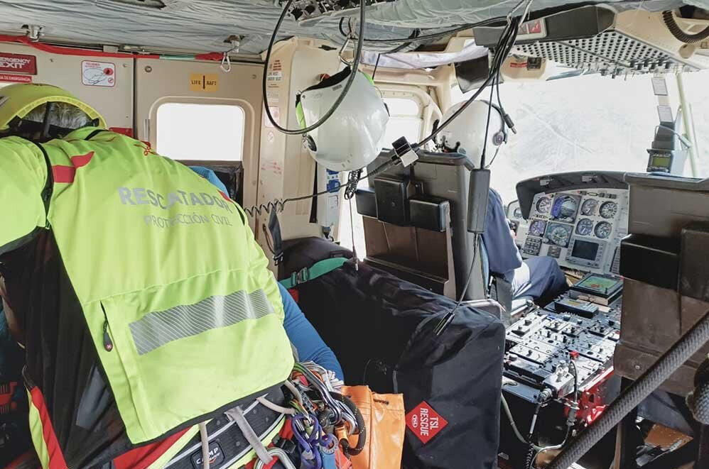 El helicóptero los izó con grúa desde la misma cima y los dejó sanos y salvos en Fuente Dé. En el operativo también participaron agentes de la Guardia Civil.