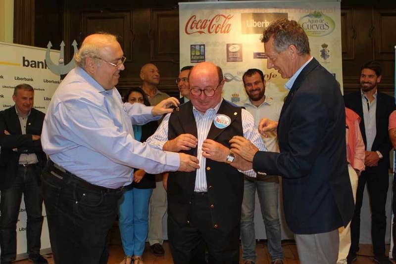 Albeto Estrada y Juan Manuel Feliz vistieron con el típico chaleco Sellero al autor del cartel Valentín del Fresno.
