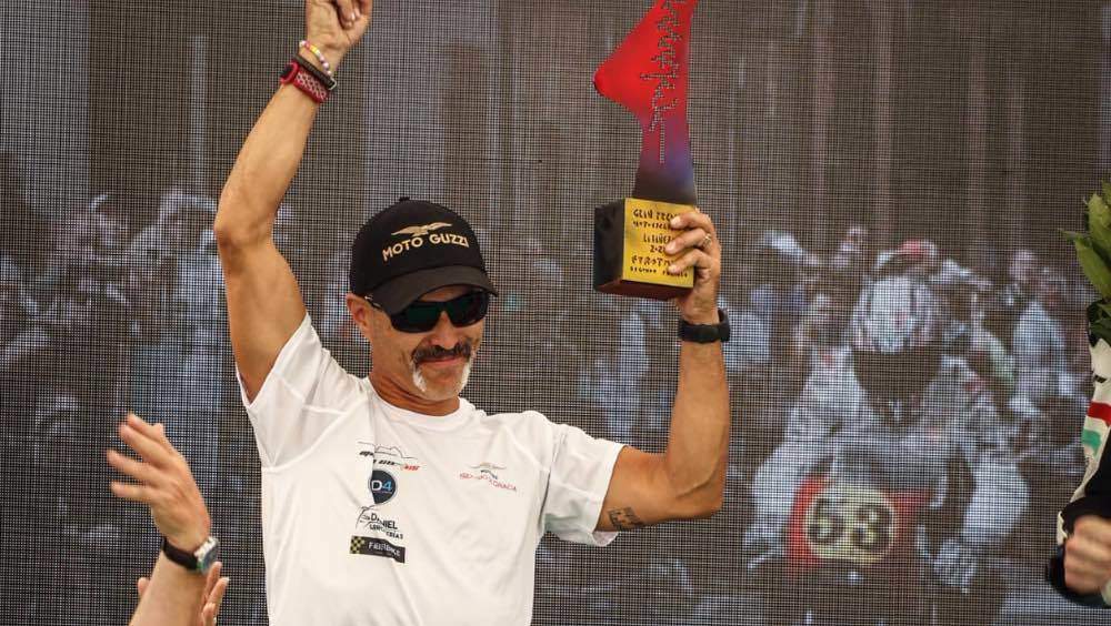 Sergio de Gracia, oriundo de Villaviciosa, se subió el pasado fin de semana al segundo cajón del podio del 63.º GP de La Bañeza. Una prueba a la que concurrió con una Guzzi V50III en la categoría EuroTwins, sección de la carrera para motos de cuatro tiempos bicilíndricas fabricadas hasta 1984.