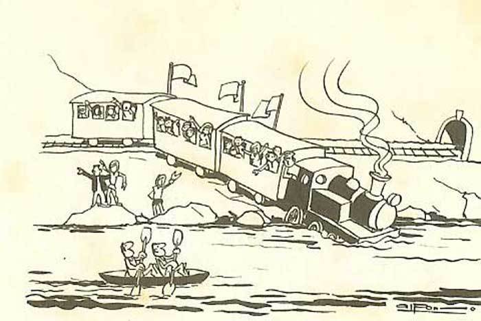 Todo lo que sigue en este romance es hermoso, pero siguiendo la sugerencia de mi amigo y entusiasta sellero, Agustín Aramburu, transcribo, casi íntegro, esta deliciosa estampa del genial Alfonso Iglesias, el creador de nuestros inolvidables Pinón, Telva y Pinín, que fueron los protagonistas de dos carteles de lujo creados por él para los Descensos de 1980 y 1982.