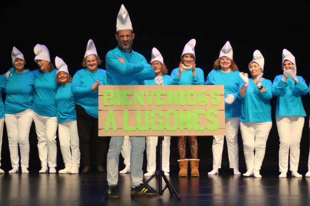 Y, cuando parecía que todo había terminado y que la gala ya no daba para más, las tablas comenzaron a llenarse de pitufos, saliendo de ambos lados del escenario. El final se escribía solo: con el alcalde sentado en el patio de butacas, acompañado de las concejalas Pilar Santianes y Maria José Fernández, que previamente habían tomado parte en el desfile, tenía dos opciones: aceptar el ofrecimiento de subirse al escenario y disfrazarse de pitufo gruñón y unirse a la troupe o dejarlo correr: y Ángel García no es de los que dejan pasar de largo una oportunidad como esta. Así que, ni corto ni perezoso, se subió al escenario, acompañado de sus concejalas y, con mucho humor, se colocó la camiseta azul y el gorro de pitufo para proporcionar una imagen para el recuerdo y finalizar brindando con el público por un gran 2025 para Siero.