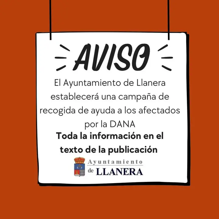 El Ayuntamiento de Llanera se suma a la campaña de recogida de ayuda coordinada por la FEMP, el Gobierno de Asturias y la Delegación del Gobierno, para las zonas afectadas por la DANA.