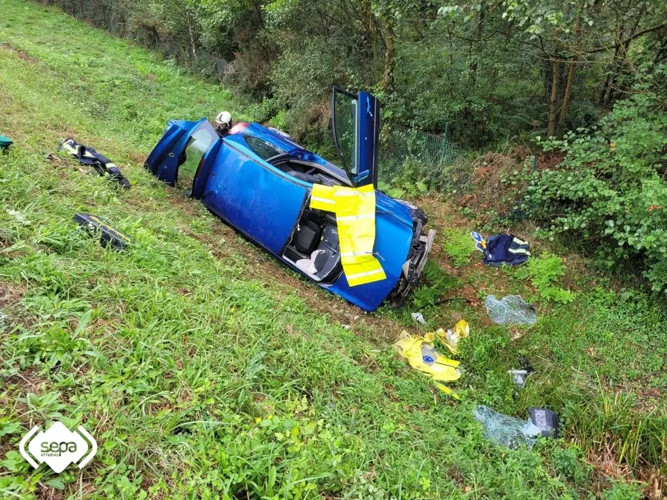 La afectada tuvo que ser excarcelada del interior del coche por efectivos de Bomberos del Servicio de Emergencias del Principado de Asturias (SEPA) con base en el parque de La Morgal. Tras estabilizar y asegurar el turismo los bomberos abrieron un acceso para el equipo sanitario a través de la luna delantera y posteriormente cortaron la puerta del maletero y retiraron los asientos. En coordinación con el equipo sanitario evacuaron a la mujer, inmovilizada con collarín, con la tabla de rescate.