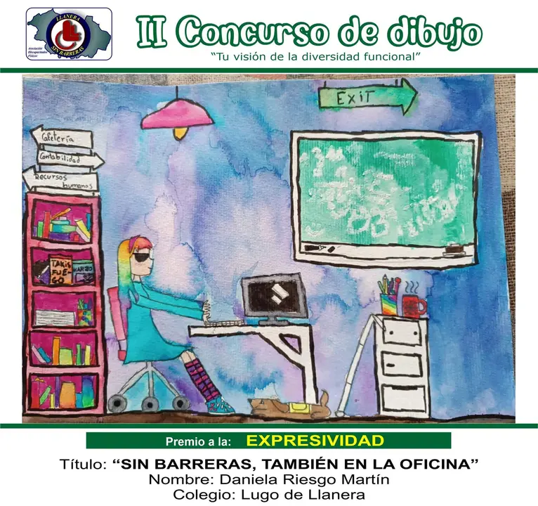 Premio a la EXPRESIVIDAD: Título: “SIN BARRERAS, TAMBIÉN EN LA OFICINA” Nombre: Daniela Riesgo Martín; Colegio: Lugo de Llanera